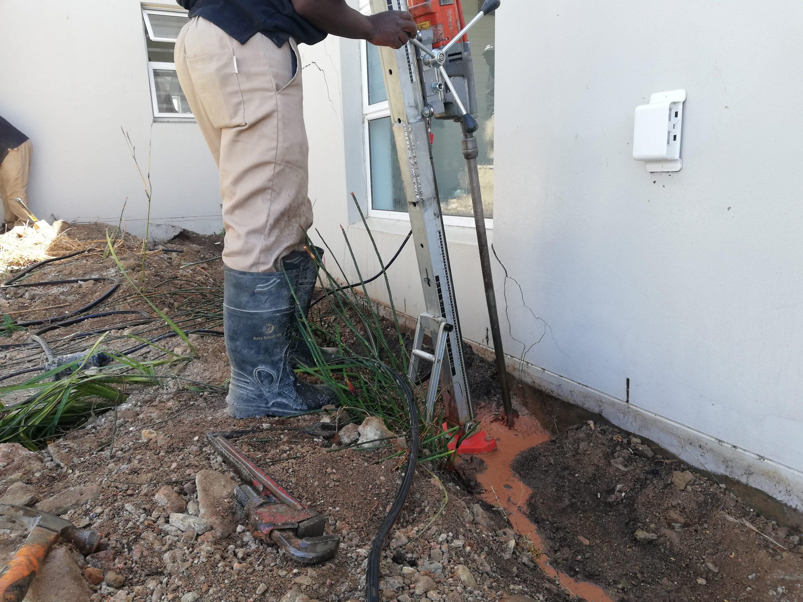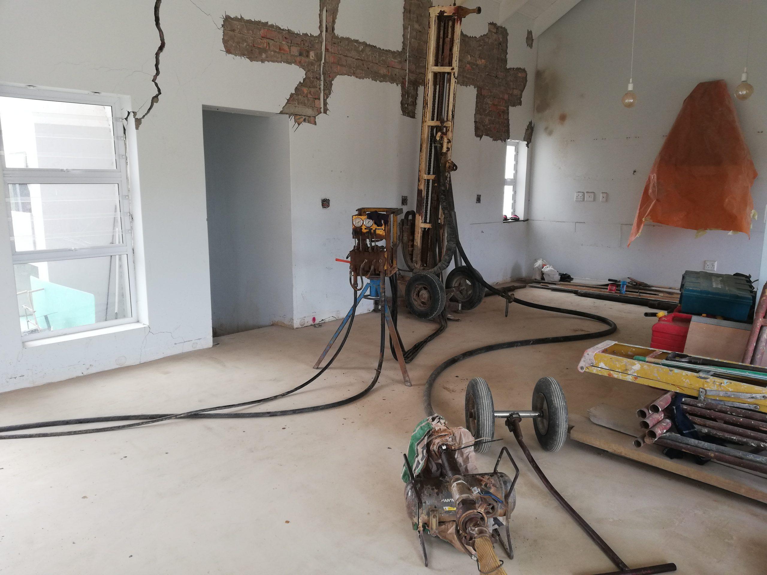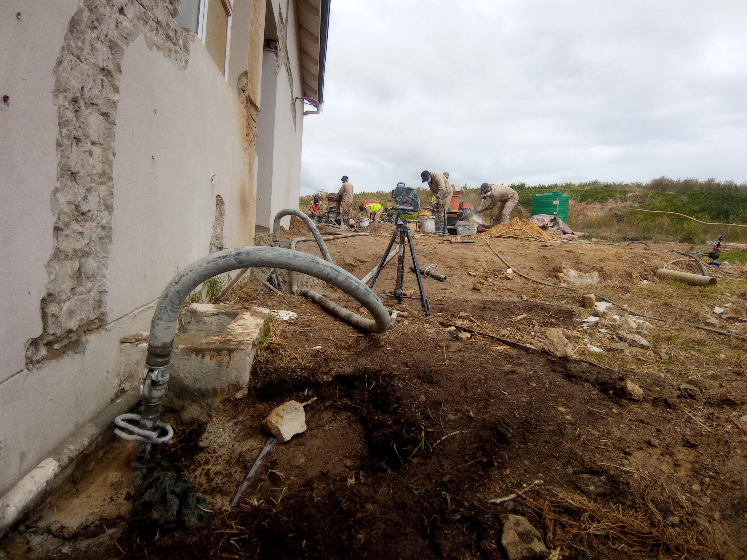 In areas where foundations have been compromised, foundation piles provide a reliable stabilization solution. Sections of the foundation are exposed at relevant intervals, and core holes are drilled through the foundation into the underlying soil, typically to a depth of 1.5-2 meters.